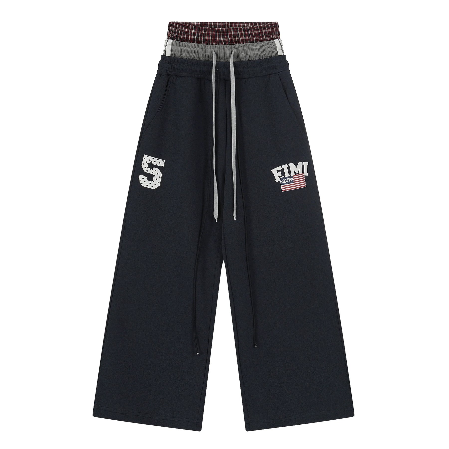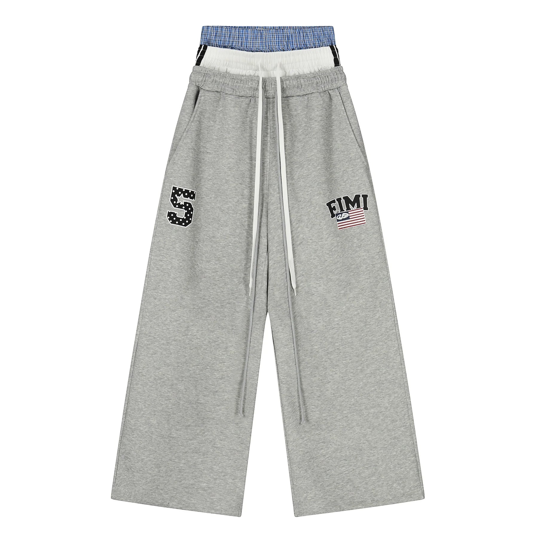 Ropasy Vintage High-Waist Patchwork Straight-Leg Sweatpants